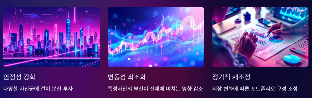 - 자산 분산은 단일 자산군에 대한 의존도를 줄이고, 전체 포트폴리오의 안정성을 강화합니다.