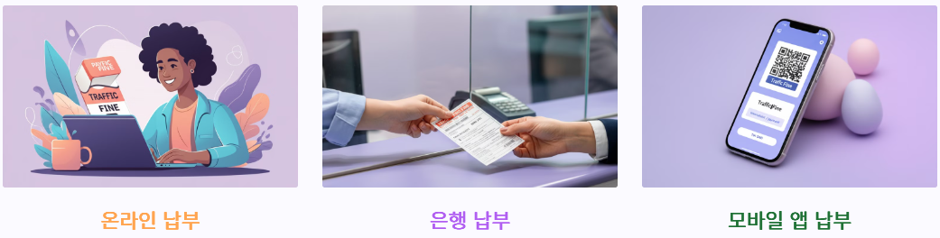 - 경찰청 교통민원24, 정부24, 위택스 등의 플랫폼을 이용해 신용카드, 계좌이체로 납부.