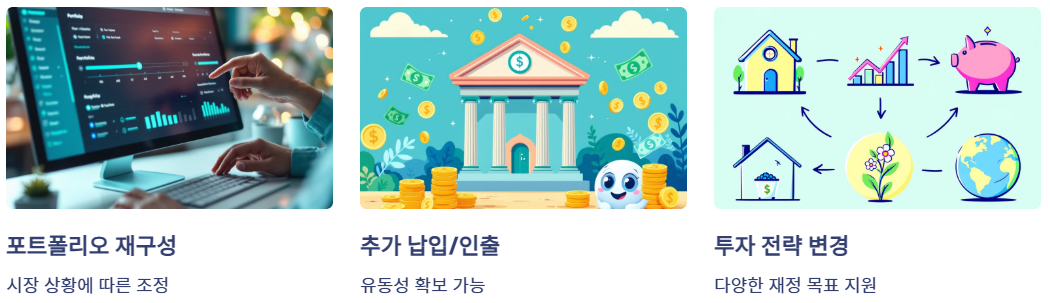 - 추가 납입이나 일부 자금 인출이 가능하여 유동성을 확보할 수 있습니다.