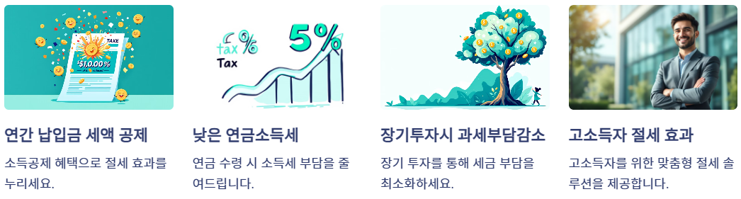 - 연간 납입금에 대해 일정 금액의 세액 공제를 받을 수 있습니다. 이는 연간 소득에서 공제되어 절세 효과를 제공합니다.