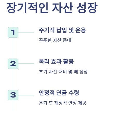 - 주기적인 납입과 자산 운용을 통해 꾸준히 자산을 증대시킬 수 있습니다.